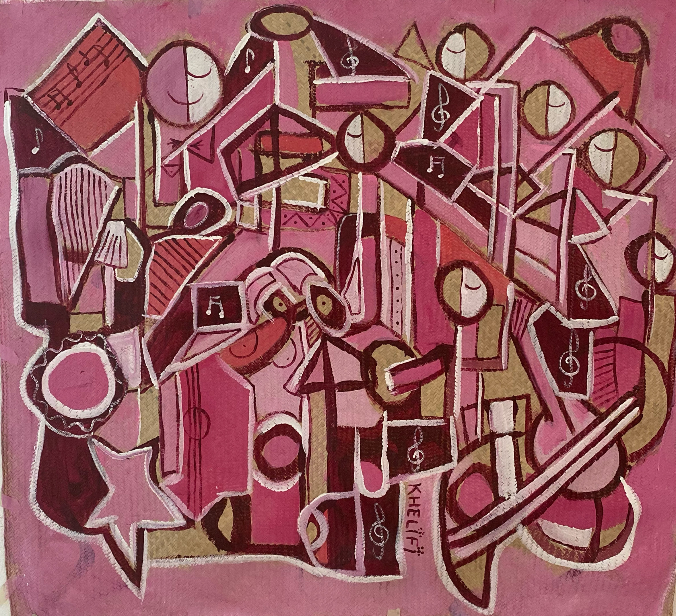 Pintura acrilico s/petate, firmada y numerada con pluma, sellada con el sello del Museo Casa Leon Trostky CDMX, donde fue exhibida por primera vez.