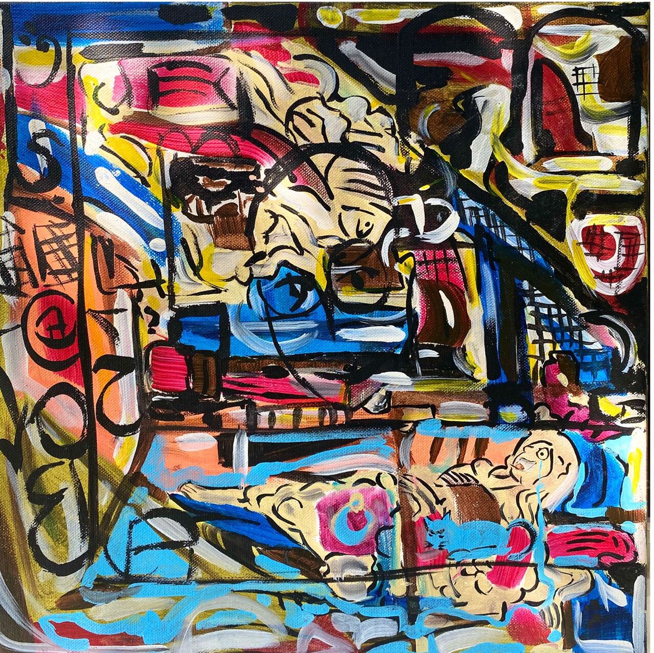 Pintura acrilico s/tela, firmada y numerada con pluma, sellada con el sello del Museo Casa Leon Trostky CDMX, donde fue exhibida por primera vez.